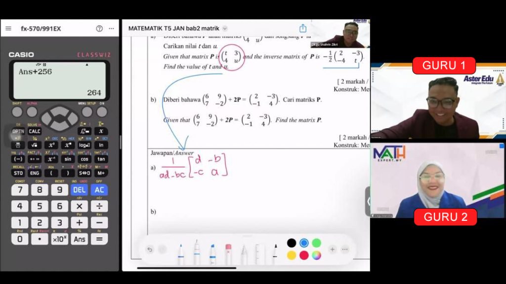 Selaras Dengan Pendekatan Pembelajaran Yang Disarankan Oleh KPM. Guru pertama mengajar LIVE. Guru kedua jawab soalan pelajar melalui Personal Chat Q&A.
